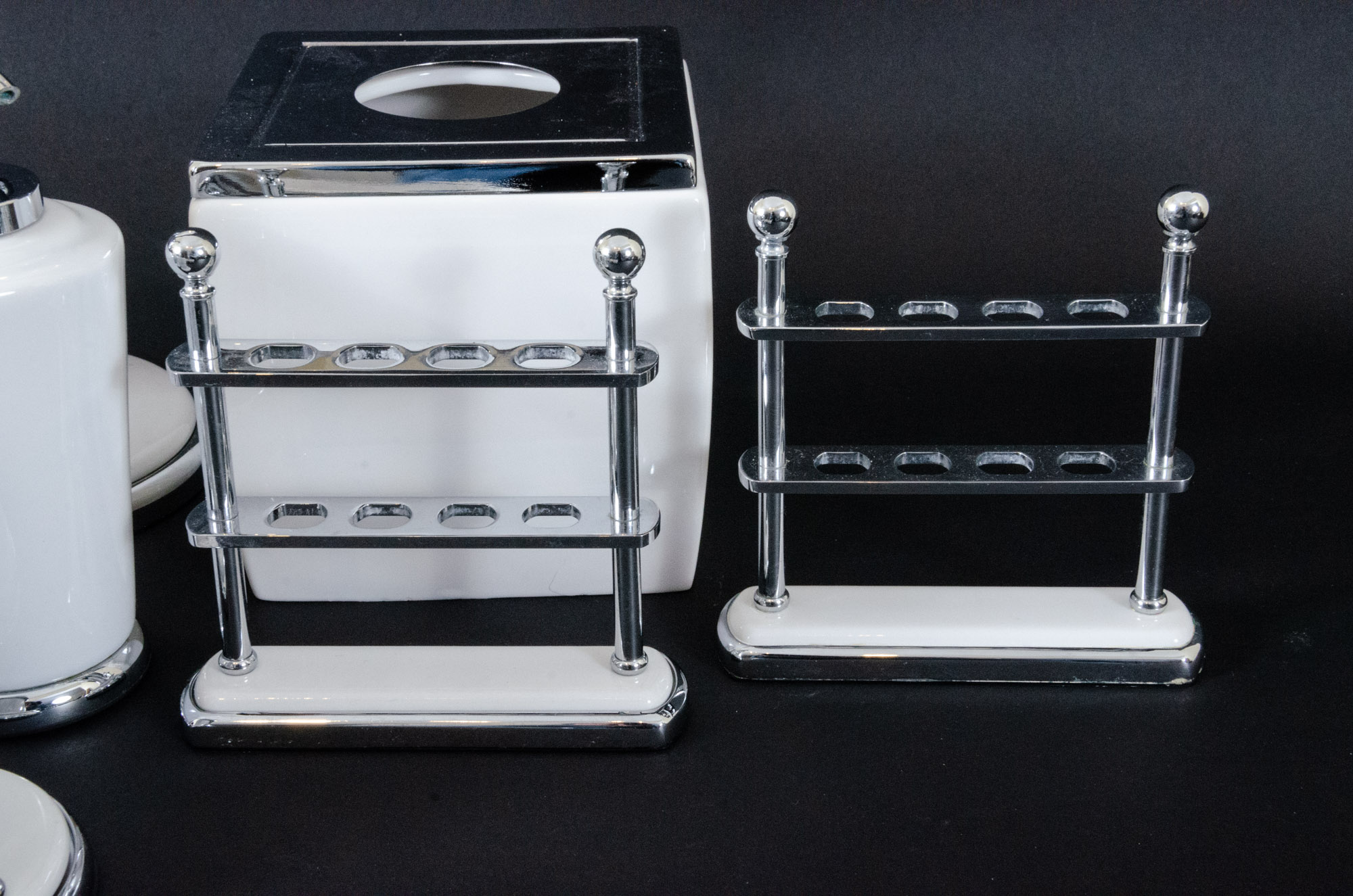 Waterworks Studio Apothecary Vanity Accessories $40 ... from i.pinimg.com You'll also find a variety of bathroom lighting options and bathroom accessories to really make your bathroom shine. Find vanity cabinets, legs, or full vanities in a variety of styles. Complete your bath vanity project with the right bathroom faucet. Since an outdated vanity can age the entire look of your bathroom, changing your bathroom cabinets can have a big impact. Available in a range of styles and sizes, these organizers, shelves and racks securely install onto your. Get bathroom accessories from target to save money and time. Zccz bathroom accessory sets, 4 pieces bathroom accessories complete set vanity countertop accessory set with marble look, includes lotion dispenser soap pump, tumbler, toothbrush. Shop bed bath & beyond for incredible savings on bathroom accessory sets you won't want to miss.